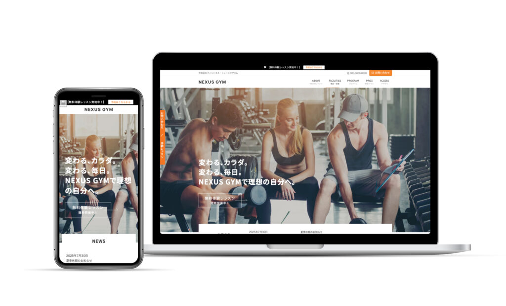 NEXUS GYM様 2026年1月9日 最終更新日時 : 2026年2月14日 oneback Realistic smartphone and laptop mock up on white background vector